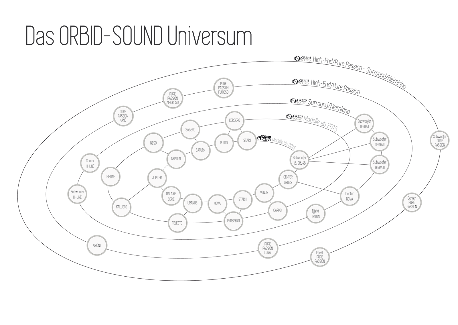 Klang bleibt Klang und Orbid Sound bleibt Orbid Sound. Ein unvergleichbarer Klang, gestern, heute und morgen. Diesem Klang fühlen wir uns verpflichtet, er gehört zur DNA von Orbid Sound und war deshalb auch die Basis für die neuesten Entwicklungen. Viele fragen sich, weshalb wir die neuen Modelle nicht einfach nach den Vorgängermodellen benannt haben. Haben wir. Fast! Die neuen Modelle sind wo möglich nach den Monden ihrer Vorgänger benannt. Immer in der Nähe und schicksalhaft verbunden
